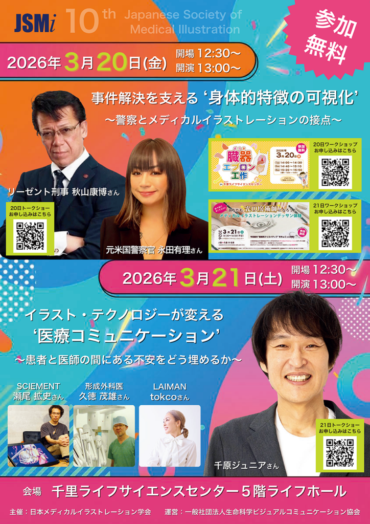 2026年3月20日(金・祝)と21日(土)の2日間、大阪・千里ライフサイエンスセンターにて「日本メディカルイラストレーション学会」の10周年記念大会を開催いたします。
